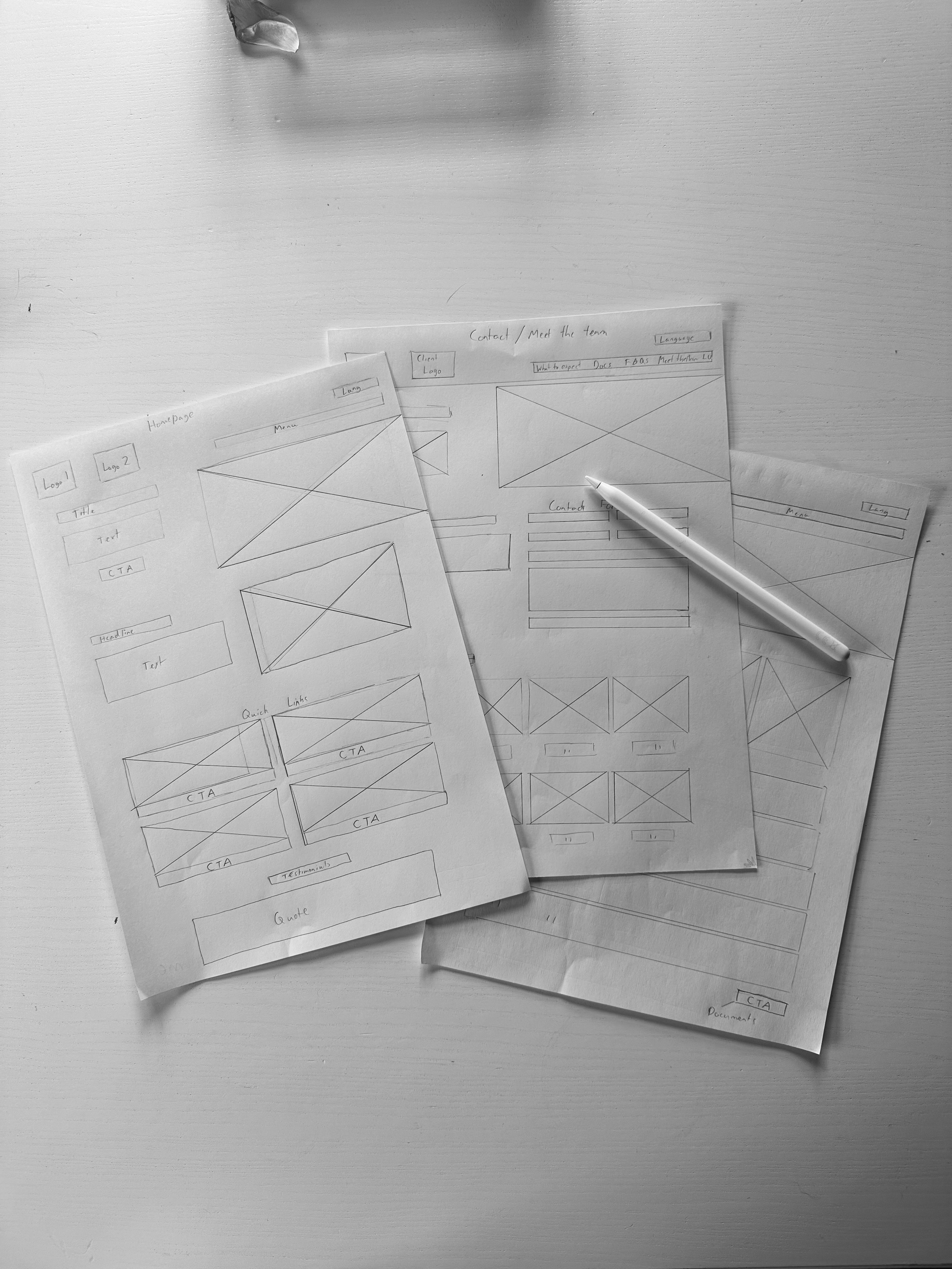 Once the structure felt clear, I translated the sketches into wireframes in Figma. This allowed me to validate navigation flow, content grouping, and page relationships before layering in branding and visual design.