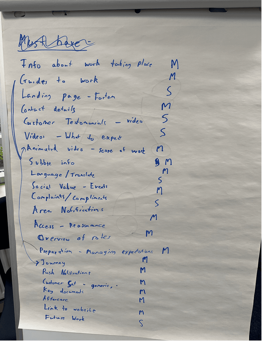 In the second phase of the workshop, we mapped the resident journey from the moment they were notified of upcoming works through to completion. We identified key touchpoints: